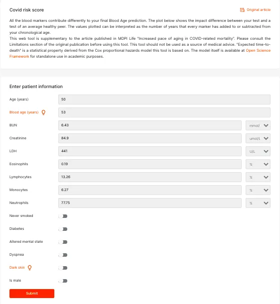 The tool is based on research published last week in the peer-reviewed journal Life. The study collected the blood test results of more than 5,000 COVID-19 positive patients admitted to 11 public hospitals in New York.